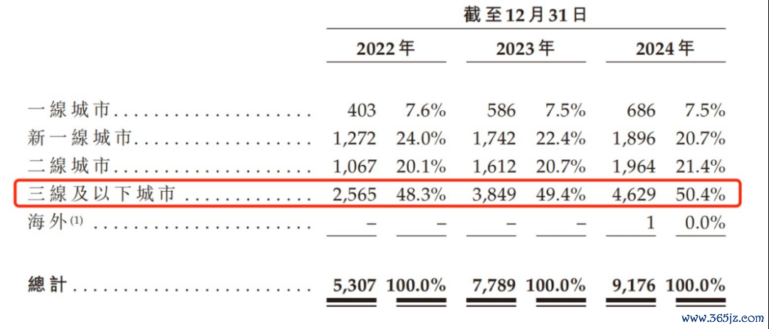 招股书显示,沪上阿姨的所有门店覆盖了国内300多个城市。从近3年的财务数据可以发现,沪上阿姨在三线及以下城市的门店数量在公司门店总数中占比将近一半。